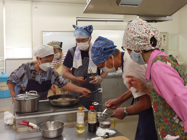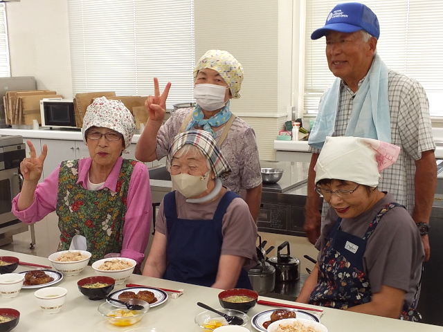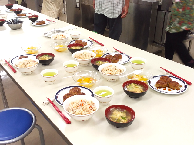 趣味の教室 令和6年7月9日 松山市福祉センター 今回は、男の料理教室でした。 さっそくご家族から、料理のリクエストがあった方がいらっしゃったようです。いつものように楽しい会になりました。 メニュー ・えのきハンバーグ ・炊き込みご飯(たこ飯) ・レタススープ ・フルーツポンチ