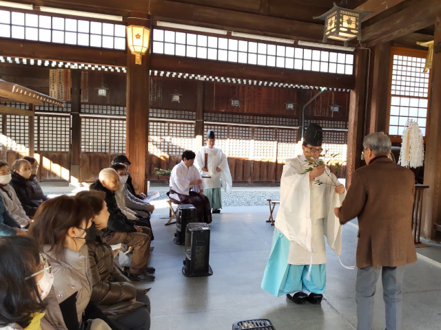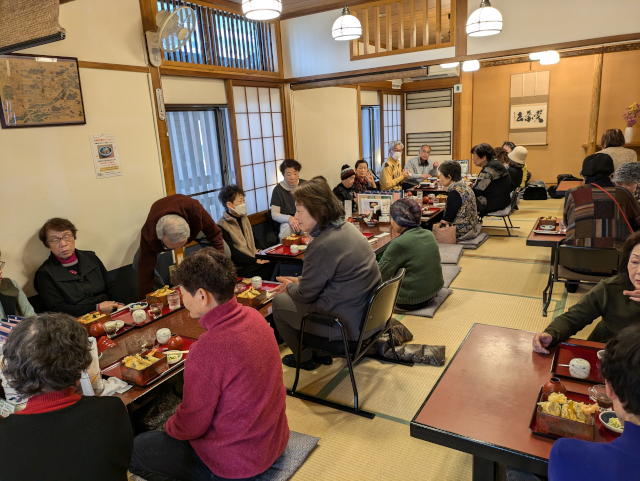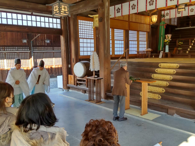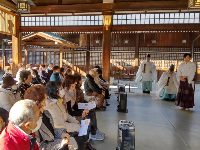 令和7年1月20日(月)護国神社参拝と周辺散策、ランチ会を行いました。 初詣をかねて護国神社参拝(社殿内でお祓いを受けました)、万葉苑と一草庵周辺を散策し、道後の大黒屋でランチを楽しみました。 33名の参加がありました。